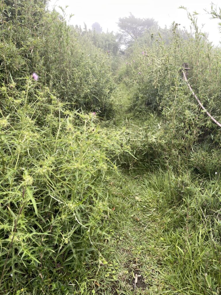 あざみがチクチク刺さり辛いトレイルです、8月、9月は要注意